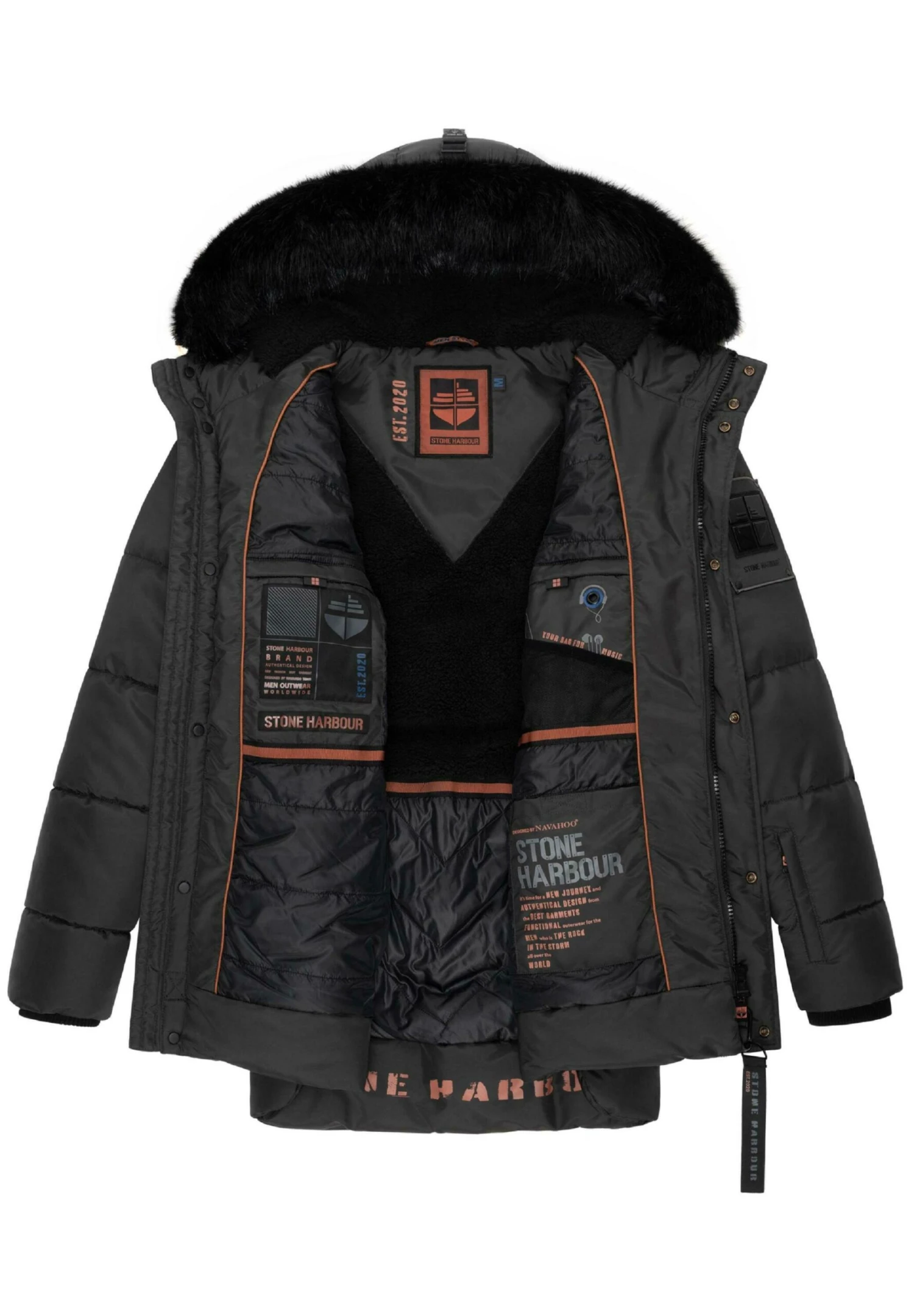| Details capuchon | Tunnelkoord, gevoerd, afneembare imitatiebontkraag |